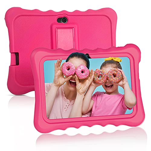 Kids Tablet Android 10 ANTEMPER 7 Zoll Tablets Lerntablet für Kids,2+32GB ROM/128GB(TF Karte),HD IPS Display,Quad Core,Kindersicherung,GMS Zertifiziert,WiFi Bluetooth,mit Kapazitivem Stift-Rosa