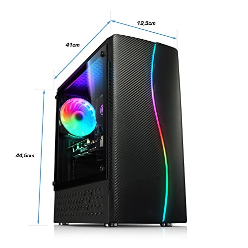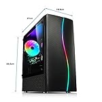 - Eine perfekte Ausstattung. In diesem Gamer-PC befinden sich eine schnelle SSD Systemplatte, viel Arbeitsspeicher, starker AMD Ryzen Multicore Prozessor, Gaming Grafikkarte, alle gängigen Anschlüsse wie USB3 / HDMI und dies ist einem beeindruckenden Gehäuse mit einstellbarer Beleuchtung.