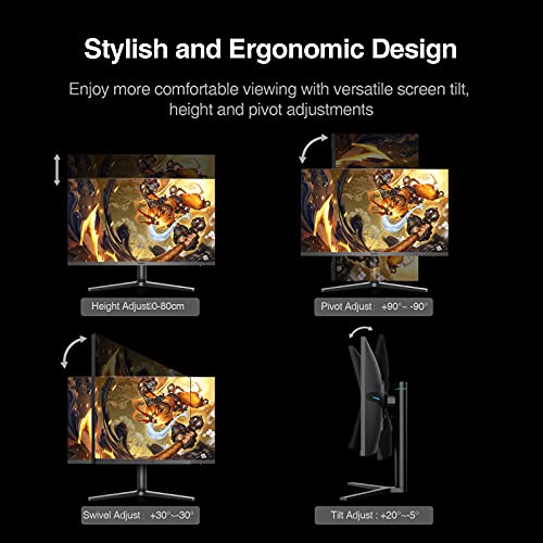 - 【Einzigartiges Design mit schwarzem Loch】Der QHD Monitor vereint exquisite Handwerkskunst mit modernster Technologie und bringt ein ultradünnes Gehäusedesign. Das stilvolle mattschwarze Aussehen mit blauen Zierleisten bringt Sie in das Geheimnis und Hightech von KOORUI. Der ergonomisch geformte Standfuß ermöglicht es, den gaming monitor zu kippen, zu schwenken und in der Höhe zu verstellen. Der gaming monitor 27 zoll ist VESA-Kompatibel und ermöglicht Ihnen somit mehr Platz in Ihrer Umgebung.