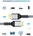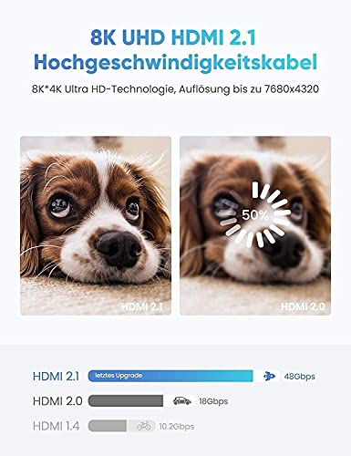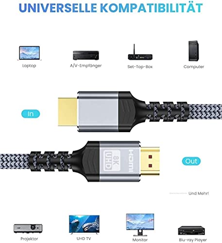 - 【Spitzentechnologie ---- 8K @ 60HZ HDMI-Kabel】 Dieses 8K HDMI-Kabel verwendet die modernste Technologie, ist mit 8K @ 60HZ und 4K @ 120HZ kompatibel, zeigt jedes Partikel klar an und verarbeitet jede Signalquelle genau. Mit der einzigartigen dynamischen HDR- und 12-Bit-Farbverarbeitungstechnologie von 8K HDMI ist jede Szene des Videos jedes Bild mit idealer Tiefe, Helligkeit, Detailgenauigkeit, Kontrast und größerem Farbumfang.
