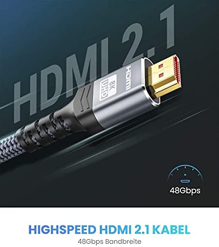 Kurz HDMI 2.1 Kabel 1m, Snowkids 48Gbps HDMI 2.1 Geflochtenes Kabel-4K bei 120Hz 7680P, DTS: X, HDCP 2.2 & 2.3, HDR 10, eARC, Dynamisches HDR, kompatibler Projektormonitor PS 3/4