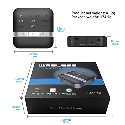 - 1. 2 IN 1: Das TX-Modell kann das Audiosignal vom Fernseher / Projektor / PC an den drahtlosen Kopfhörer oder Lautsprecher übertragen. Das RX-Modell kann über Kopfhörer / MP3 / Lautsprecher / Autoradio verwendet werden Musik-Streaming-Soundsystem.