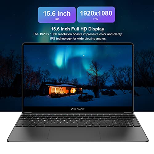 Laptop 15,6 Zoll, TECLAST F15S Ultra Slim Notebook 6GB RAM+128GB ROM Windows 10 Computer, Intel Apollo J3455 Quad Core Processor 1920×1080FHD, 38000mWh, WLAN5.0G/2.4G TF+Mini-HDMI+2*USB3.0 Ganzmetall
