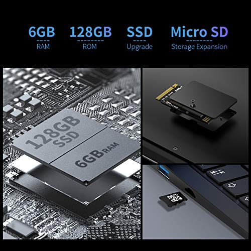 - HOHE LEISTUNG - Intel Celeron Apollo Lake J3455 hat eine maximale Frequenz von bis zu 2,30 GHz. Der Intel UHD Graphics 500 Core kann die tägliche Arbeit erledigen. LPDDR3 mit 6 GB RAM und 128 GB SSD-Festplatte. Unterstützung beim Aktualisieren von Micro-SD- und SSD-Karten.