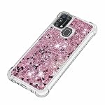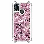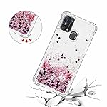 Lijc Kompatibel mit Samsung Galaxy M31 Hülle Liquid Quicksand Transparent Four Corners Anti-Fall TPU Stoßstange Weiches Silikon Stoßfeste Abdeckung-Diamant Roségold Liebesherz