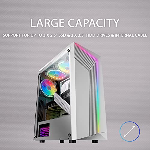 Select Variant: Mars Gaming MC-X7 Weiß, PC Gaming ATX Gehäuse, ARGB Front, 12cm RGB Lüfter, Volles Seitenfenster