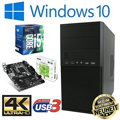 - Intel Core i5-7500 (Quad-Core) 4 x 3,40 GHz - Kaby Lake, 8 GB DDR4, 256 GB SSD + 1000 GB HDD SATA3, Intel HD 630 Grafik 4K, USB 3.1, HDMI, DVI, VGA, DVD-Brenner, Sound, Gigabit-Lan, Windows 10 Pro 64bit o.DT.