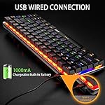 - WIRELESS & WIRED KEYBOARD: Die Gaming-Tastatur verfügt über drahtloses Bluetooth und kabelgebundene Dual-Modi. Es kann mit Bluetooth verbunden oder zur Verwendung direkt an das USB-Kabel angeschlossen werden. Verwenden Sie die Taste FN + Tab, um zwischen Bluetooth und Kabel zu wechseln. Wenn die Hintergrundbeleuchtung der Tastatur zweimal blinkt, ist der Moduswechsel erfolgreich. Wenn die FN-Taste schnell blinkt, befindet sich die Tastatur in einem niedrigen Batteriestatus.