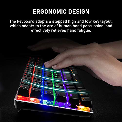 - 82 KEYS COMPACT KEYBOARD:Diese mechanische Mini-Tastatur verfügt über ein 82-Tasten-Layout und das kompakte Tasten-Design spart viel Platz. Die Tastaturgröße beträgt nur 12,2 * 4,72 Zoll, was sehr leicht zu tragen ist. 82 Schlüssel Vollschlüssel Antikollision. Es ist weitgehend kompatibel und mit dem Win XP / 7/8/10 / MAC-System kompatibel. FN + A / S kann zwischen Mac und Win-System wechseln. Es kann für PCs, Telefone und andere elektronische Geräte mit Bluetooth-Einstellungen verwendet werden.