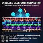 Mechanische Bluetooth-Tastatur, kabellos und verkabelt, Zwei Modi, 3 Bluetooth-Verbindungskanäle, 18 RGB-Chroma-Regenbogen-Hintergrundbeleuchtung, 82 Tasten, Anti-Ghosting(Blauer Schalter, schwarz)