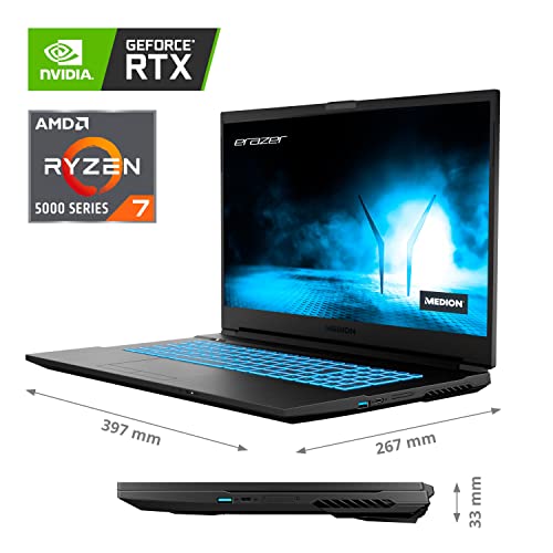MEDION ERAZER Defender E15 43,9 cm (17,3 Zoll 144Hz) Full HD Gaming Notebook (AMD Ryzen 7 5800H, 32GB DDR4 RAM, 1TB PCIe SSD, NVIDIA GeForce RTX 3050 Ti 4GB GDDR6, RGB Backlit Keyboard)