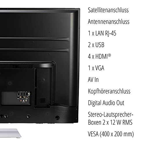 - Lieferumfang: Smart-TV X16522 MD31525, Standfuß inkl. Schrauben, Fernbedienung inkl. Batterien (AAA), Bedienungsanleitung, Garantie-Booklet