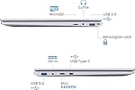 - Wireless-Modul Intel WiFi 6 AX200 und MiMo 2x2-Antenne für Gig+-Konnektivität mit bis zu 2,4 Gbps Geschwindigkeit und Dual Band 2.4-Abdeckung mit 5 GHz entsprechend dem neuesten 802.11ax-Standard, Bluetooth 5.1, 2 USB 3.0-Anschlüsse, USB-Anschluss Typ-C Full Function, MiniHDMI-Ausgang, MicroSD-Kartensteckplatz, Anschluss für Kopfhörer und DC-IN.