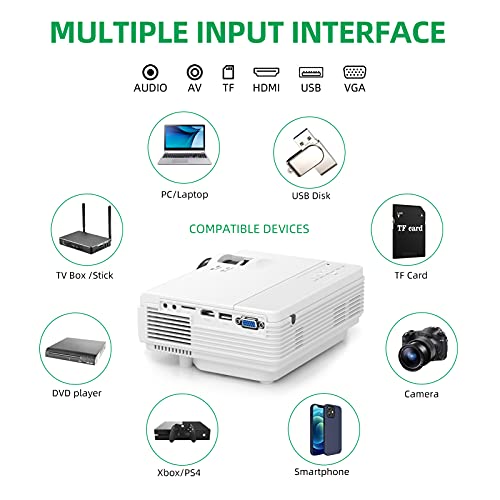 - 🎁【 Breite Kompatibilität 】 Der Beamer full hd eignet sich für Anwendungen mit mehreren Szenen, Mini beamer kompatibel mit Smartphones/Tablets/PC/Laptop/TV-Sticks/PS4,etc. Sie können Videos, TV-Serien, Spiele, Fotos, Sport, UEFA Champions League usw. genießen. (Aufgrund des Urheberrechts der App können Sie Filme auf Netflix, Prime Video, Hulu nur über Laptop, Fire TV-Stick, Roku oder Chrome Cast-Verbindung ansehen.)