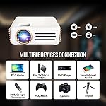 - WiFi Projektion & Smart Sync Mobile Screen: Dieser WiFi Beamer hilft uns, die Beschränkung durch Kabel loszuwerden und unterstützt iOS und Android kabelgebundene und kabellose Projektion. Sie können Filme, Videos usw. von Ihrem Telefon, Tablet oder Computer in wenigen einfachen Schritten auf den Beamer übertragen. Mit diesem 1080P Beamer können Sie dem Kabelsalat Lebewohl sagen!