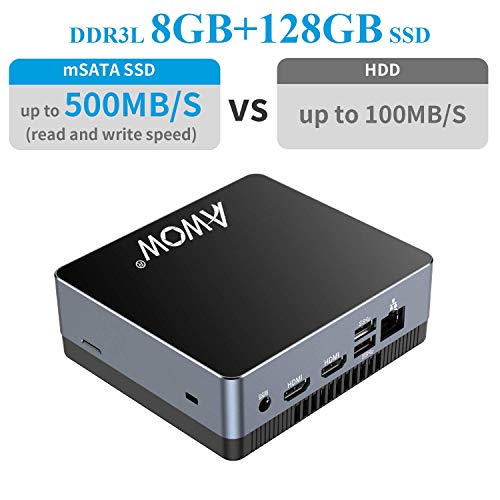 - 【8GB+128GB, Extended Storage】 Equipped with 8GB DDR3 RAM, 128GB Kingston M.2 SSD memory, supports 2.5” SATAIII SSD/HDD ( don't include HDD and HDD cable) expansion and Micro SD card up to 256GB, the mini desktop pc provides fast data transfers, quick boots and high storage capacity.