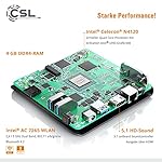 Mini PC CSL Narrow Box Ultra HD Compact v4 Windows 10 Home lüfterlos, Intel Celeron N4120 4x2600MHz, 128 GB eMMC SSD, 4 GB DDR4-RAM, Intel UHD Grafik, Dual WLAN, HDMI 2, USB 3.1, BT 4.2