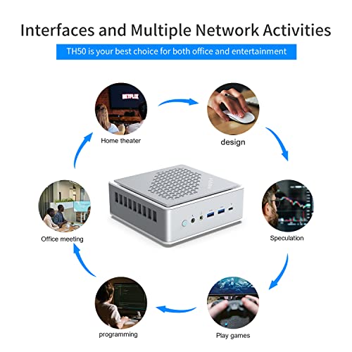 - 【Intel Core i5-11320H-Prozessor】TH50 Mini PC vorinstalliert Windows 11 pro -System, es geeignet für Intel Core i5-11320H Prozessor (Vier-Kern-CPU, Cache 8 MB, bis zu 4 GHz). Der Intel Iris Xe-Grafik bietet eine hervorragende Leistung für Ihr Heimkino und Ihren Bildverarbeitung. Der Klang beträgt unter Volllast nur etwa 48.5 dB, was in jeder Situation für das beste Erlebnis sorgt.