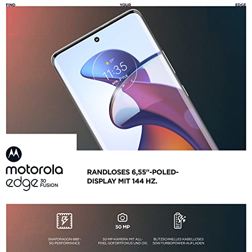 Motorola edge30 Fusion Smartphone (6,55"-FHD+-Display, 50-MP-Kamera, 8/128 GB, 4400 mAh, Android 12), Aurora White, inkl. Schutzcover + KFZ-Adapter [Exklusiv bei Amazon]