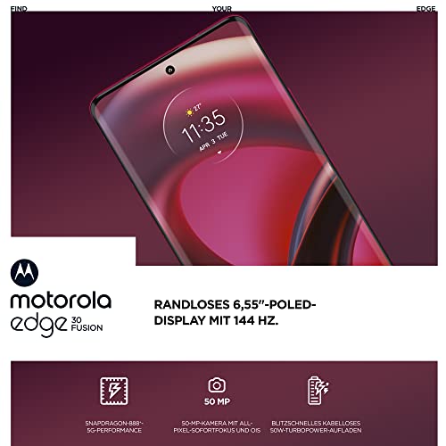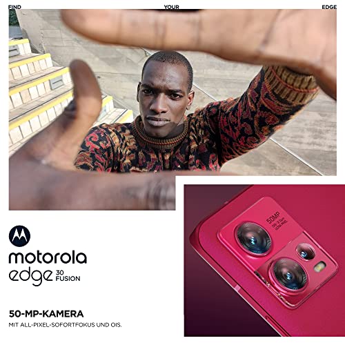 Motorola edge30 Fusion Smartphone (6,55"-FHD+-Display, 50-MP-Kamera, 8/128 GB, 4400 mAh, Android 12), Viva Magenta, inkl. Schutzcover u. Earbuds + KFZ-Adapter [Exklusiv bei Amazon]