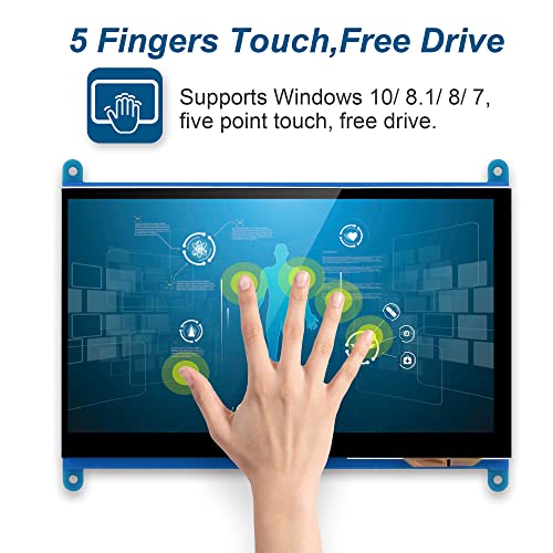 MQOUO 7 Zoll Monitor für Raspberry Pi 4 3 2, Touchscreen Display TFT HD 1024x600 LCD HDMI Bildschirm für Raspberry Pi Model B and RPi 1 B+ A BB Various Systems SC7B