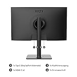- ANPASSBAR - Mit dem 4-fach verstellbaren Standfuss lässt sich der Monitor vertikal ausrichten und an fast jede Einrichtung anpassen (75 mm VESA-Montage möglich). MSI Display Kit Software bietet zusätzliche Split-Window-Funktionen & programmierbare Profile