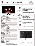 MSI Optix G273QF Esports Gaming IPS Monitor - 27 Zoll, 16:9 WQHD (2560 x 1440), Rapid IPS, 165Hz, 1ms GTG Reaktionszeit, G-SYNC kompatibel, weniger blaues Licht, VESA-Montage, DisplayPort, HDMI