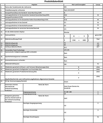 Select Variant: MSI Optix MAG301RFDE 30 Zoll Ultrawide Gaming Monitor, WFHD (2560x1080), 200 Hz, 1ms, Rapid IPS, FreeSync Premium, HDR Ready, MysticLight RGB