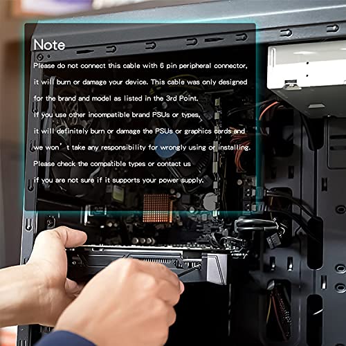 - 【Hinweis】 Bitte schließen Sie dieses Kabel nicht an einen 6-poligen Peripheriestecker an, da es Ihr Gerät verbrennen oder beschädigen kann. Dieses Kabel wurde nur für die im 3. Punkt aufgeführte Marke und Modell entwickelt. Wenn Sie Netzteile oder Typen anderer inkompatibler Marken verwenden, werden die Netzteile oder Grafikkarten definitiv verbrannt oder beschädigt und wir übernehmen keine Verantwortung für die falsche Verwendung oder Installation.