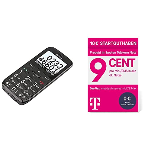 OLYMPIA Happy II Komfor Seniorenhandy Mobiltelefon mit Großtasten und Farbdisplay Notruftaste, Schwarz & Telekom MagentaMobil Prepaid Basic SIM-Karte ohne Vertragsbindung