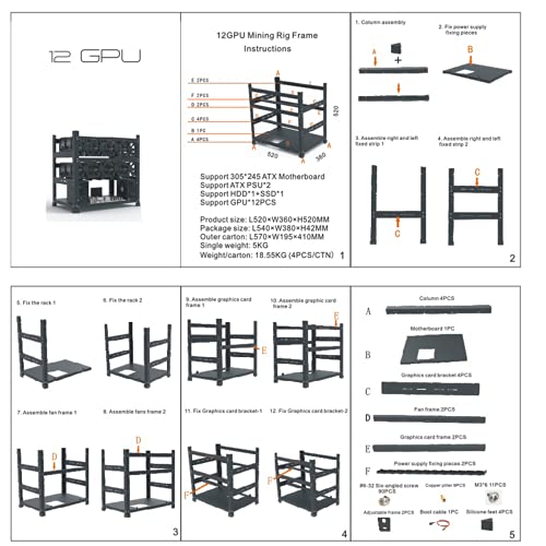 Open Mining Rig Frame for 12 GPU Mining Case Rack,12 GPU Rig Motherboard Bracket ETH/ETC/ZEC Ether Accessory Tool 3 Layers