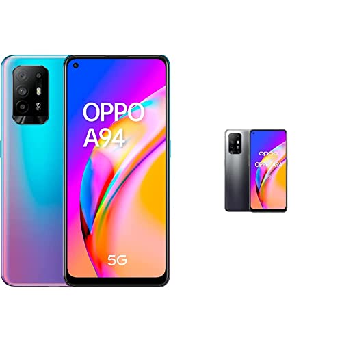 OPPO A94 5G Smartphone, 48 MP Vierfachkamera, 6,43 Zoll FHD+ AMOLED, 4.310 mAh Akku mit 30W VOOC 4.0 Schnellladen, 128 GB Speicher, 8 GB RAM, ColorOS 11.1, Cosmo Blue & A94 5G Smartphone, Fluid Black