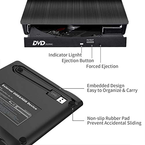 - 【High Speed Data Transfer】 - Das externe CD / DVD-Laufwerk verfügt über eine USB 3.0 High-Speed-Schnittstelle für schnellere Datenübertragung. Außerdem ist die Datenübertragung stabiler als je zuvor. Es ist auch kompatibel mit USB 2.0.