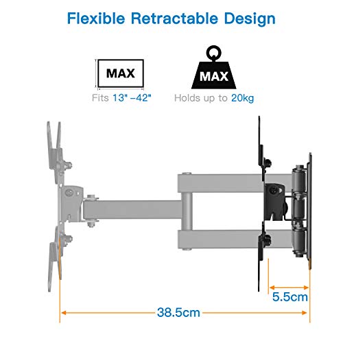 - Robuste und sichere Konstruktion –Diese TV Wandhalter ist mit kaltgewalzten Stahl gefertigt, verfügt über 1 Stahlarme und kann Fernseher mit einem Gewicht von bis zu 20kg tragen. Keine Sorge, Ihr Fernseher ist in sicheren Händen