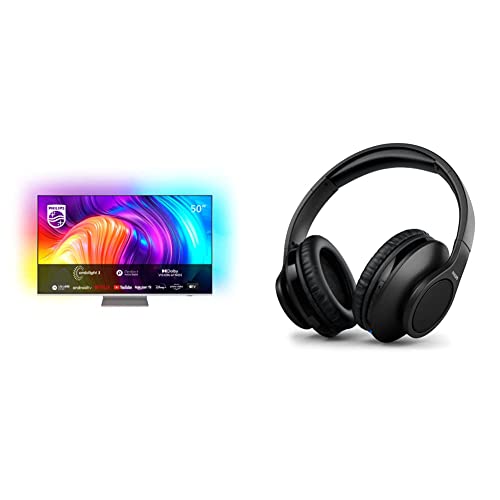 Philips 50PUS8807/12 126 cm (50 Zoll) Fernseher (4K UHD, HDR10+, 120 Hz) + TAH6206BK/00 Over Ear TV-Kopfhörer, einfache Bluetooth-Verbindung, 18 Stunden Spielzeit, geringes Gewicht