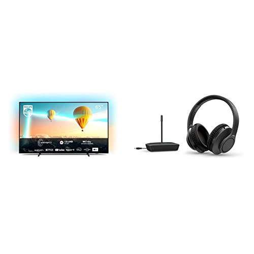 Philips 65PUS8007/12 65 Zoll Smart TV, 4K UHD LED Android TV Mit 3-Seitigem Ambilight + H6005BK/10 Over-Ear TV Kopfhörer Kabellos, Schwarz - 2020/2021 Modell