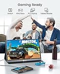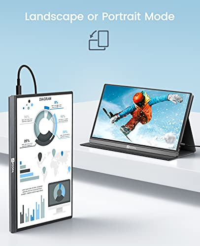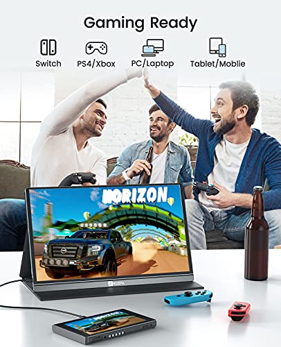 - 💻【Breite Kompatibilität für Arbeit/Gaming】Der tragbare Laptop-Monitor lässt sich einfach Laptop/PC/Mac/Phones/XBOX/PS3/PS4/PS5/Nintendo Switch usw. über Typ-C- oder Mini-HDMI-Port anschließen, die eine stabile Verbindung liefern und stetige Datenübertragung. Geeignet für Präsentationen, Spiele, Videos, Fernsehserien, Fotos usw.
