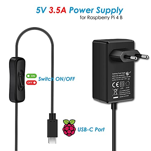 [17.5W 5V 3.5A Raspberry Pi 4 Netzteil mit ON/Off Schalter] Raspberry Pi 4 Gehäuse, iUniker Pi 4 Gehäuse Aluminium Legierung Passive Kühlung Gehäuse für Raspberry Pi 4B 8GB/4GB/2GB