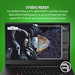 - Die NVIDIA GeForce RTX 2080 Super mit Max-Q Design (8 GB GDDR6 VRAM) ist dank noch mehr Kernen und höheren Taktraten bis zu 25 % schneller als die ursprünglich verbaute RTX 20-Reihe.