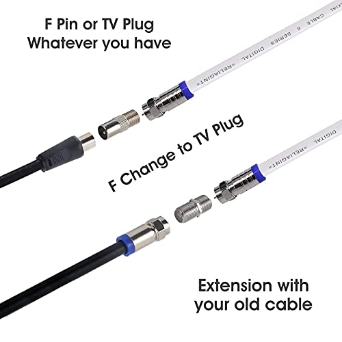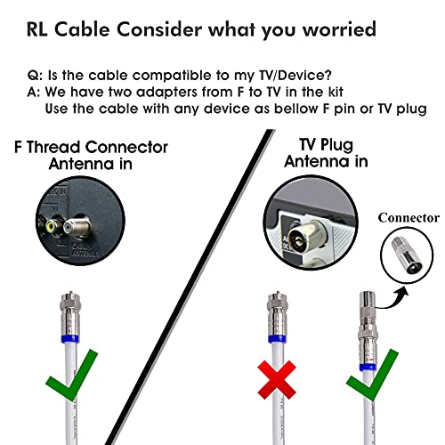 - 2.Don’t be confused about which cable to buy, our cable kit packing includes two F To TV Adapters, making itself fit for most of your video devices, Not only use F pin but also TV plug.