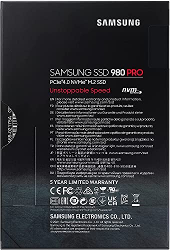 Samsung 980 PRO M.2 NVMe SSD (MZ-V8P2T0BW), 2 TB, PCIe 4.0, 7.000 MB/s Lesen, 7.000 MB/s Schreiben, Internes Solid State Drive, für Gaming und Videoschnitt
