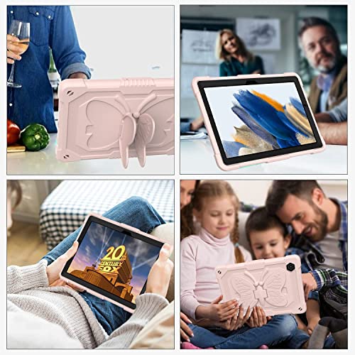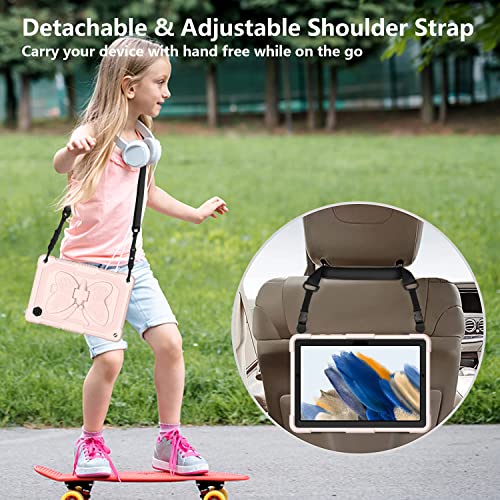 Schutzhülle für Samsung Tab A8 10,5 Zoll mit Schultergurt für Mädchen und Kinder, robust, stoßfest, robust, mit einfarbiger Schmetterlings-Rückseite, Rosa