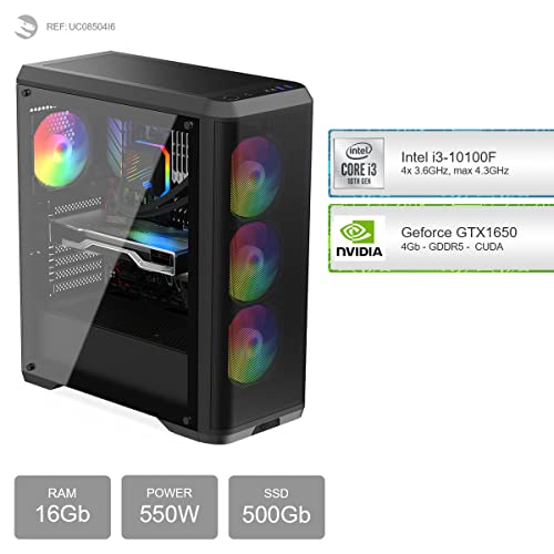 - Gaming PC, mit Prozessor Quad Core Intel Core i3-10100F 4x 3.60Ghz (max 4.30Ghz) und Grafikkarte Geforce GTX 1650 4Gb