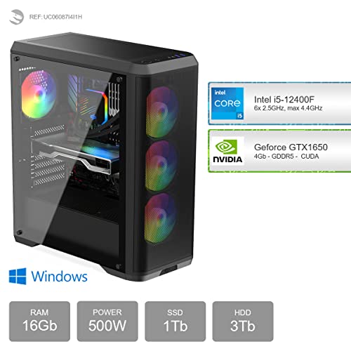 - Gaming PC, mit Prozessor 6-Core Intel Core i5-12400F 6x 2.50GHz (max 4.4GHz) und Grafikkarte Geforce GTX 1650 4Gb