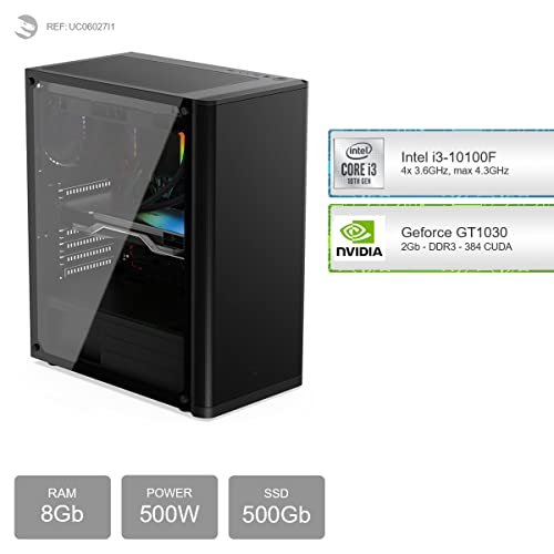 - Gaming PC, mit Prozessor Quad Core Intel Core i3-10100F 4x 3.60Ghz (max 4.30Ghz) und Grafikkarte Geforce GT 1030