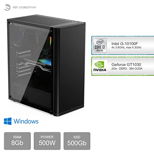 - Gaming PC, mit Prozessor Quad Core Intel Core i3-10100F 4x 3.60Ghz (max 4.30Ghz) und Grafikkarte Geforce GT 1030