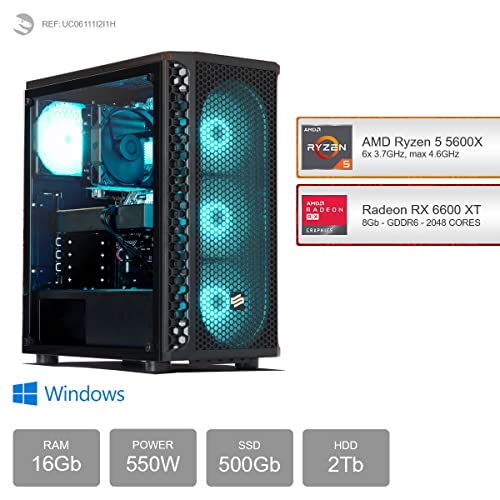 Sedatech Expert Gaming PC • AMD Ryzen 5 5600X 6X 3.7Ghz • Radeon RX6600 XT • 16GB RAM • 500GB SSD M.2 • 2TB HDD • WLAN • Bluetooth • Windows • Desktop Computer