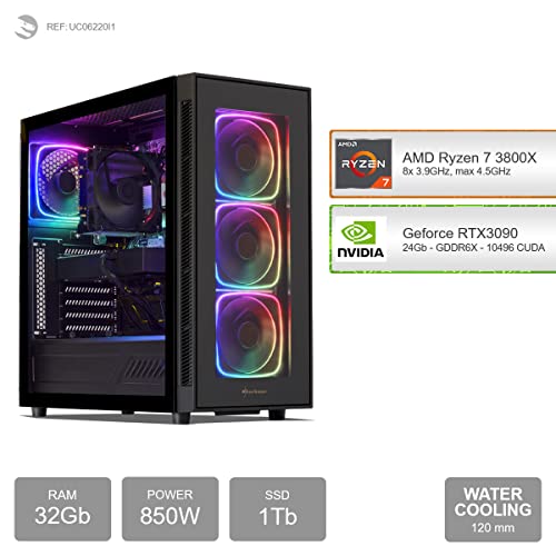 - Gaming PC, mit Prozessor 8-Core AMD Ryzen 7 3800X 8x 3.9GHz (max 4.5GHz) und Grafikkarte Geforce RTX 3090 24Gb