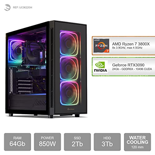 - Gaming PC, mit Prozessor 8-Core AMD Ryzen 7 3800X 8x 3.9GHz (max 4.5GHz) und Grafikkarte Geforce RTX 3090 24Gb