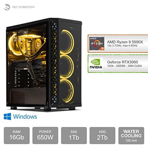 - Gaming PC, mit Prozessor 12-Core AMD Ryzen 9 5900X 12x 3.7GHz (max 4.8GHz) und Grafikkarte Geforce RTX 3060 12Gb